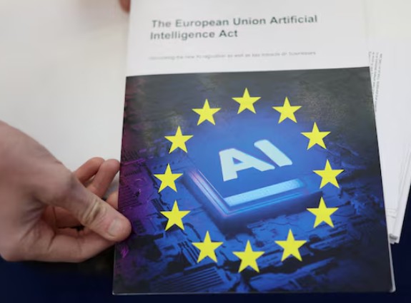 사진: 2025년 2월 5일 영국 런던 올림피아에서 열린 AI & 빅데이터 엑스포 2025에 전시된 "유럽연합 인공지능(AI)법, 로이터